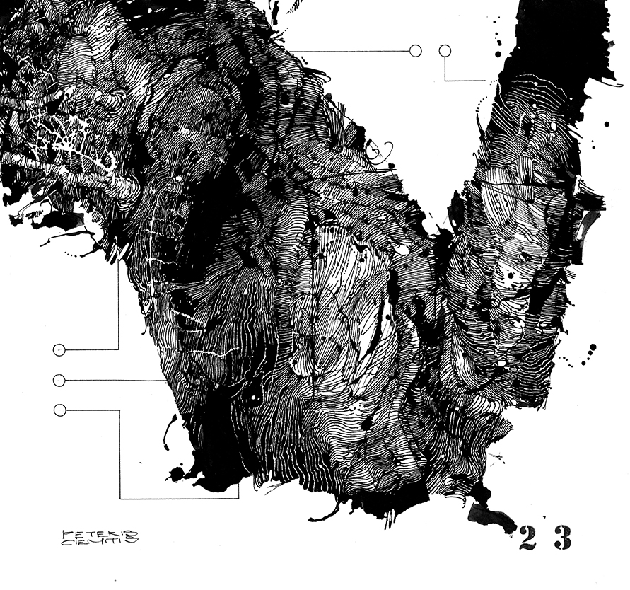 © ‘Stillpoint’ 2015 ink on paper Peteris Ciemitis
